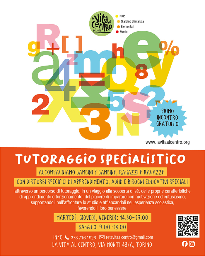 Il tutoraggio per DSA, ADHD e BES è aperto il martedì, giovedì e venerdì dalle ore 14.30 alle 19 e sabato dalle 9 alle 18 (ultimo ingresso alle 17).